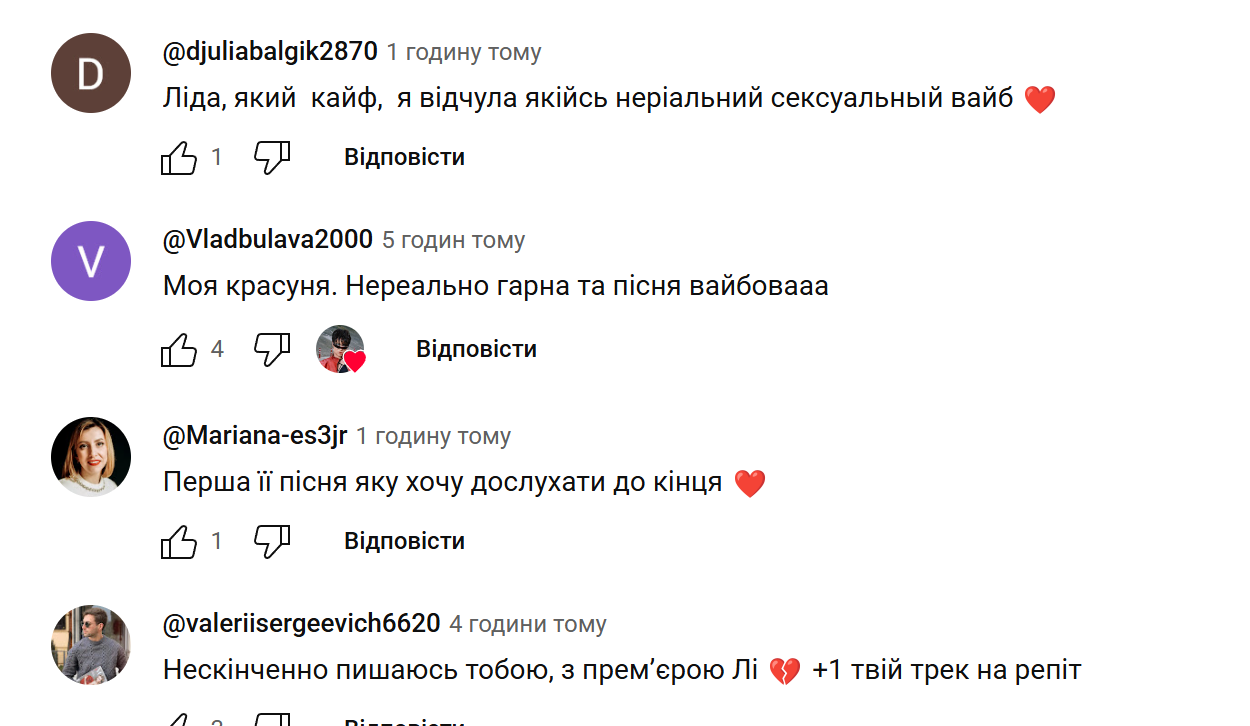 Що слухачі кажуть про пісню Lida Lee "Хентай" / Скриншоти з ютубу