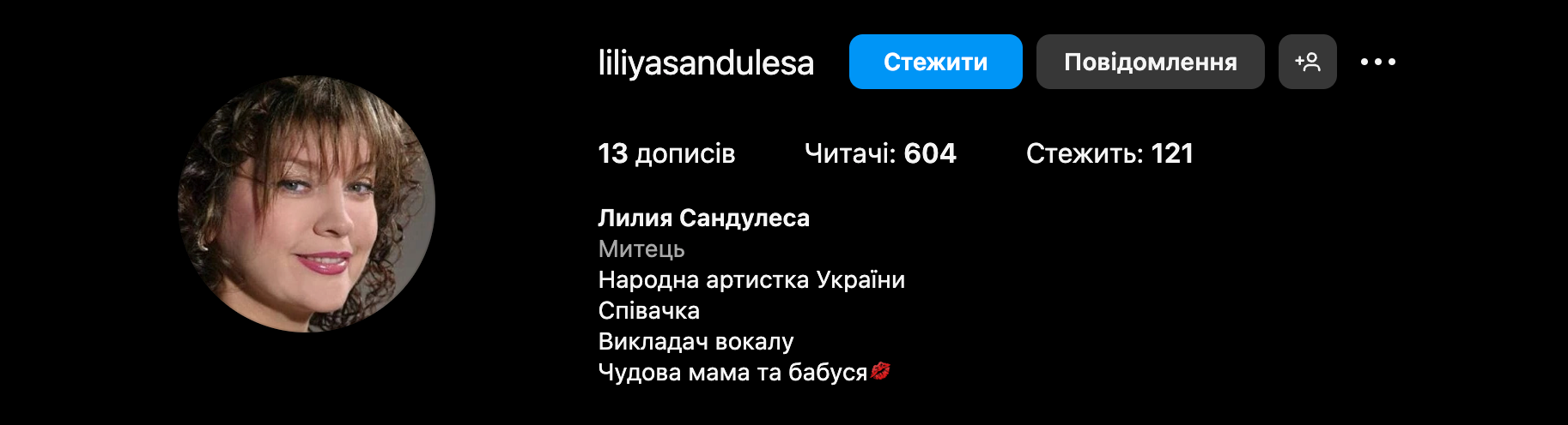 - Лілія Сандулесу, відома українська співачка, продовжує свою концертну діяльність, виступаючи також для військових у різних містах України.