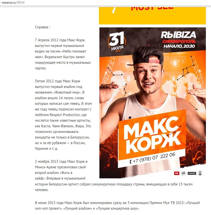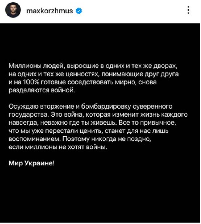 Водночас слід згадати, що після початку повномасштабного вторгнення Макс Корж скасував концерти в Росії. Утім, на офіційному сайті досі залишаються три російські міста, де нібито мали відбутися виступи.