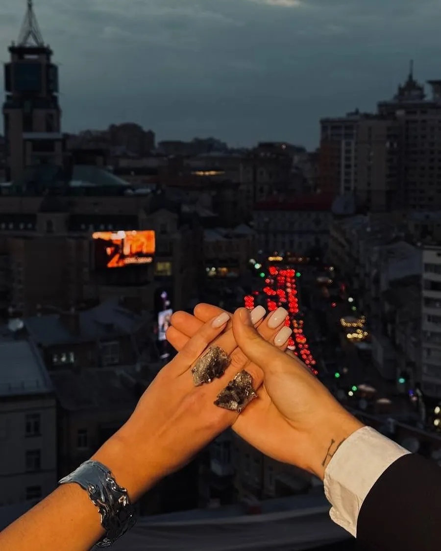 На романтичному фото MELOVIN показав свою руку й руку загадкової дівчини на тлі вечірнього Києва. Жінка мала масивну каблучку з каменю.