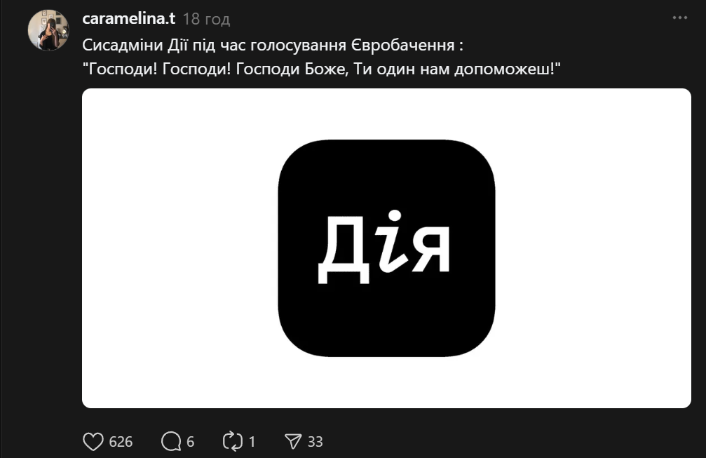 - Жарти стосувалися операторської роботи, голосування в додатку "Дія" та виступів фіналістів.
