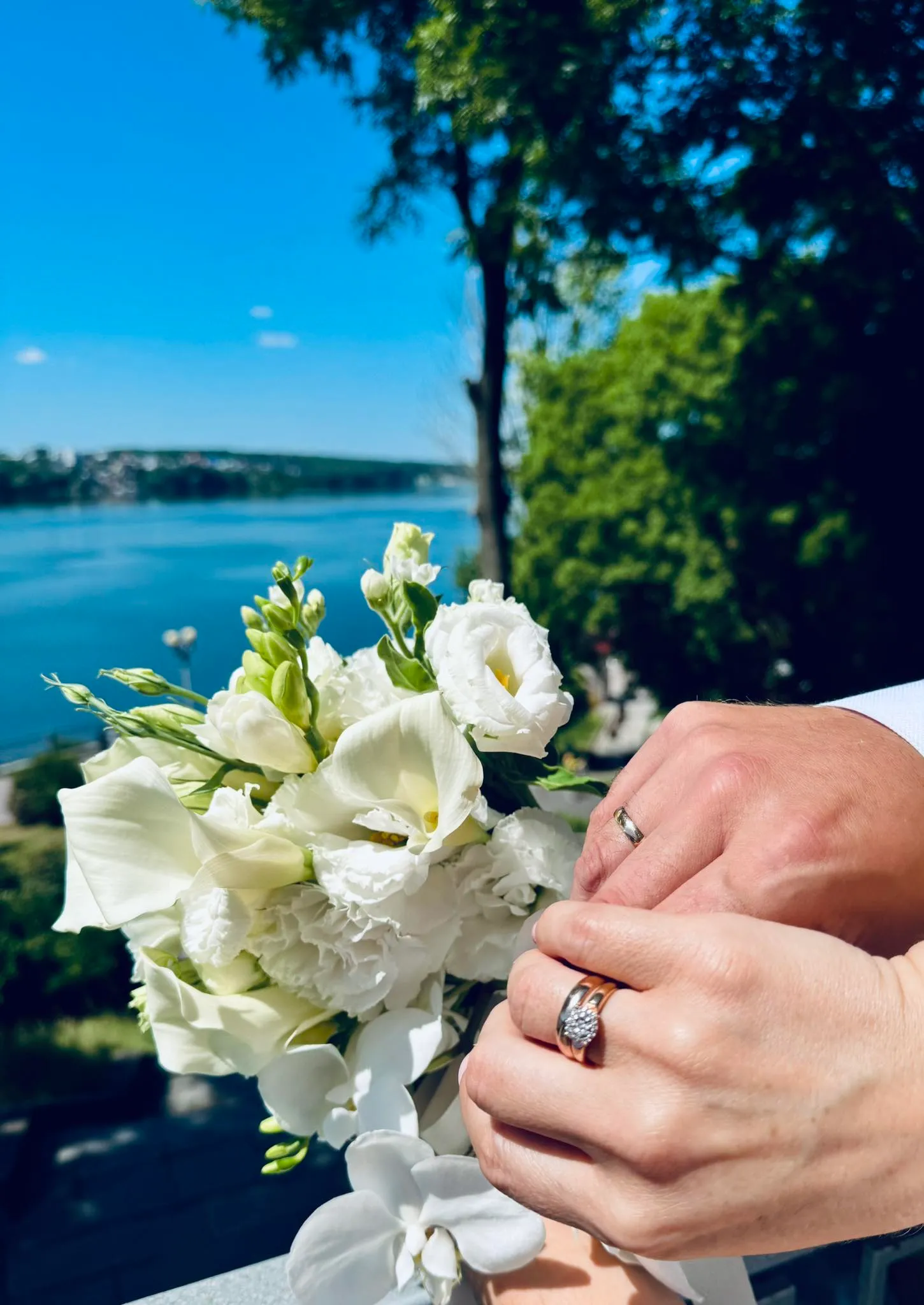 Михайло Діанов показав фото з обручками, а також продемонстрував романтичну світлину наречених. Він позував у білій сорочці й сірих штанах, а його обраниця Мирослава – у білосніжній спідниці міді та жакеті без рукавів.