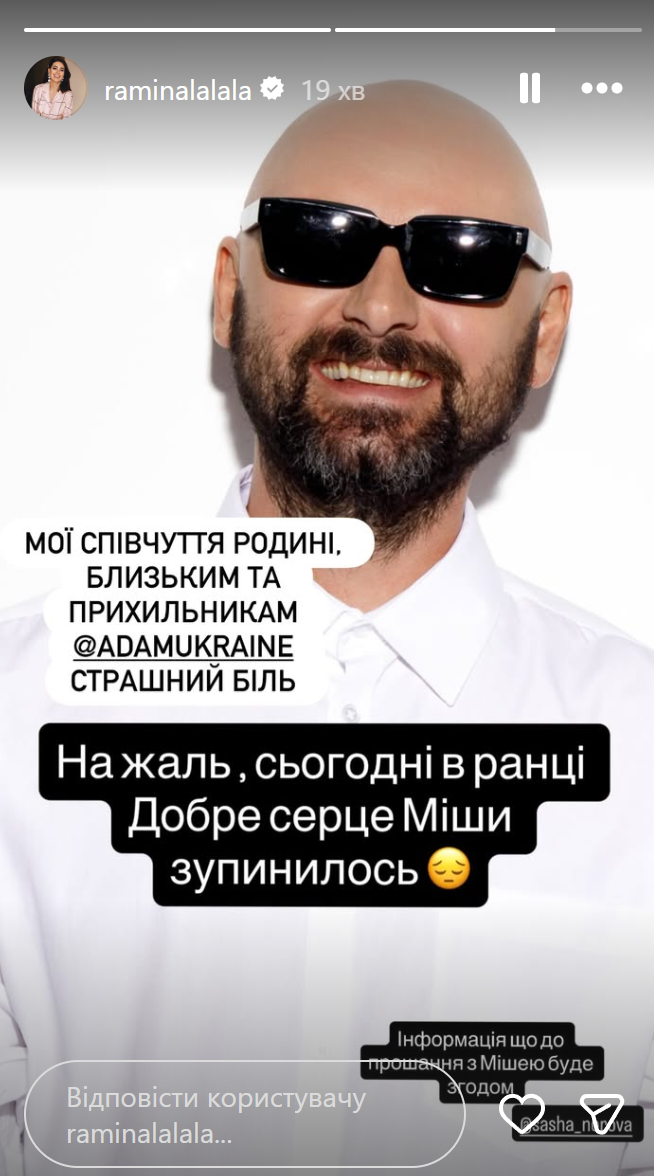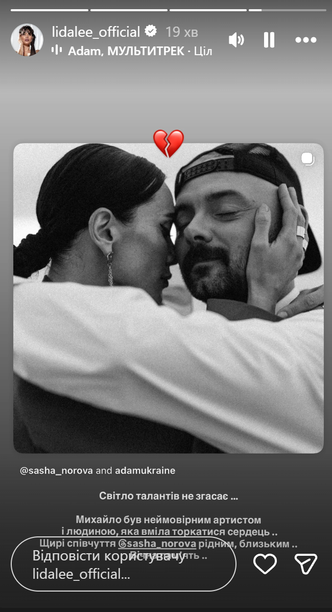 Інтерв'юерка висловила співчуття родині, близьким і прихильникам гурту ADAM і написала: "Страшний біль".