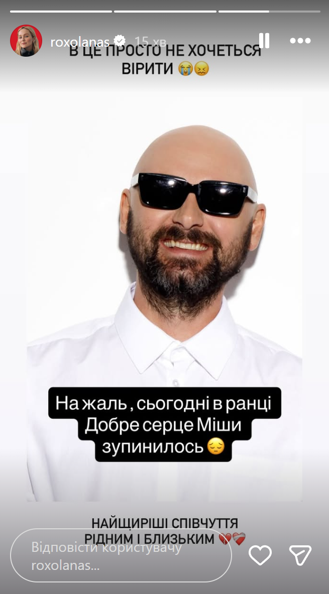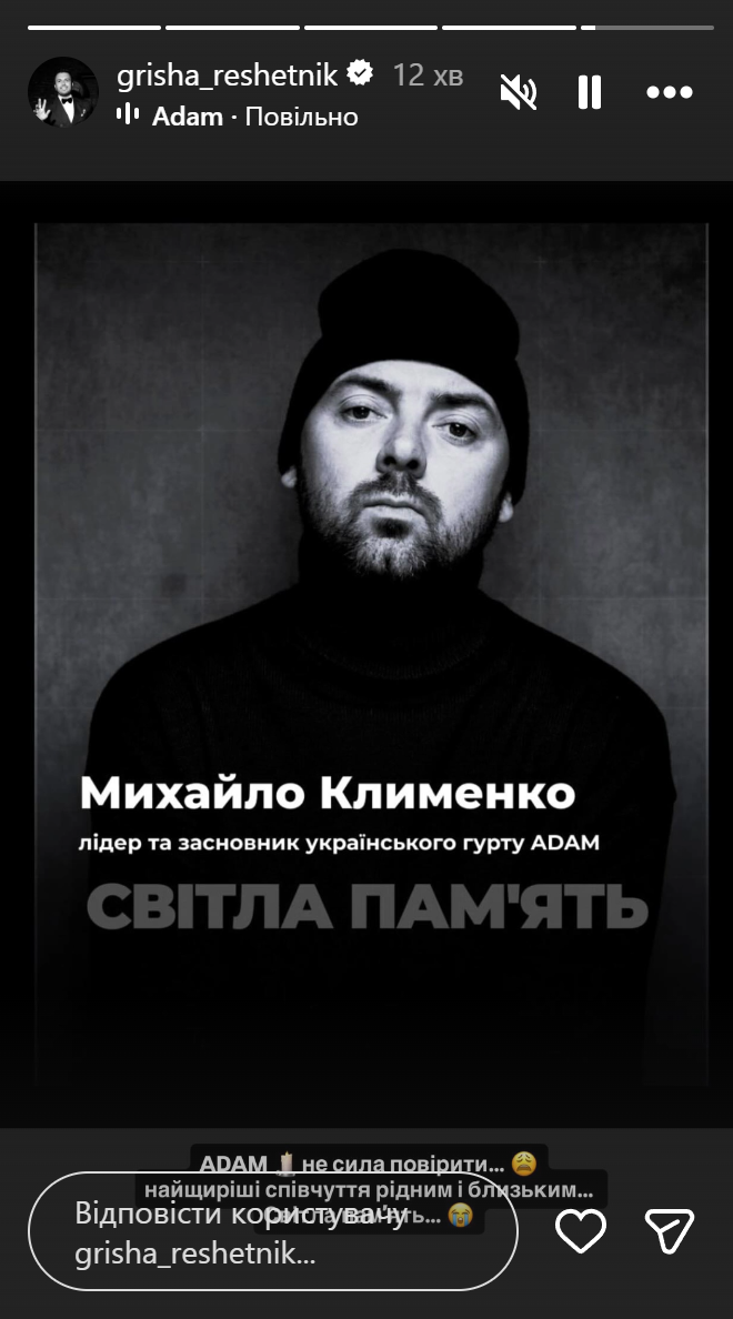 Григорій Решетник також прокоментував трагічну новину у власних інстаграм-сторіс.