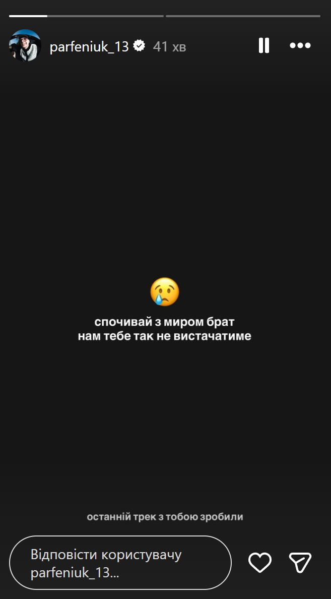 PARFENIUK відреагував на смерть Михайла Клименка з гурту ADAM / Скриншот з інстаграм-сторіс
