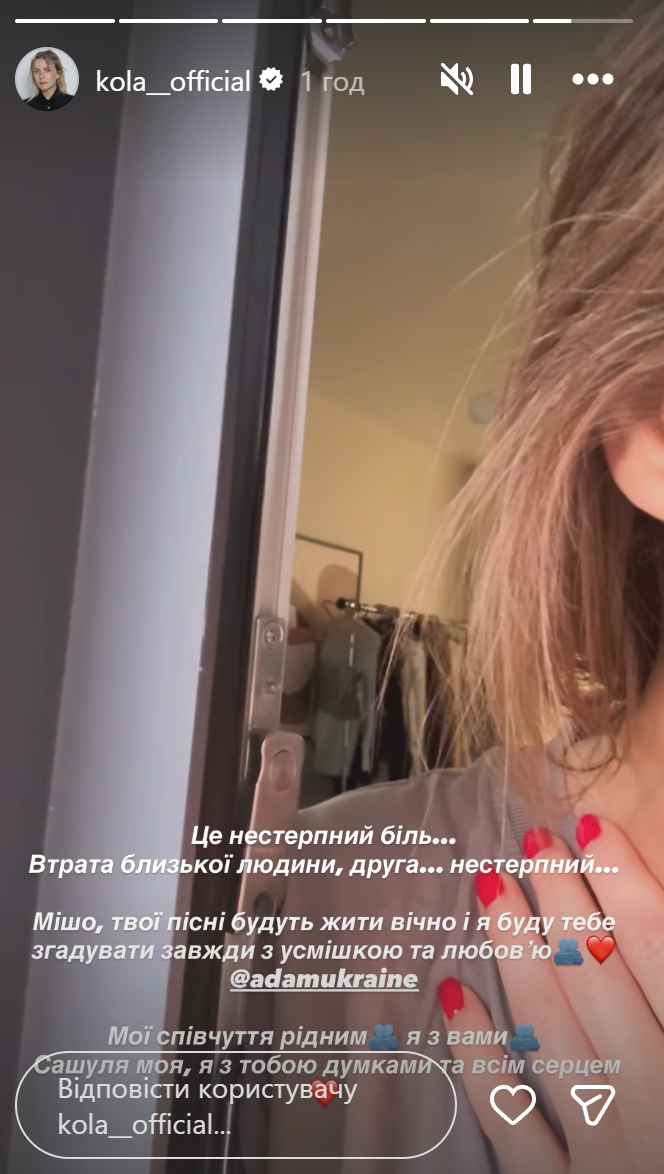 Це нестерпний біль. Мішо, твої пісні будуть жити вічно та я буду згадувати тебе завжди з усмішкою та любов'ю. Сашуня моя, я з тобою думками та всім серцем,