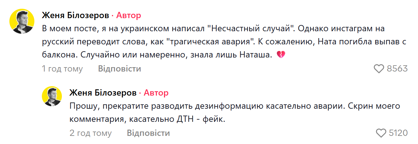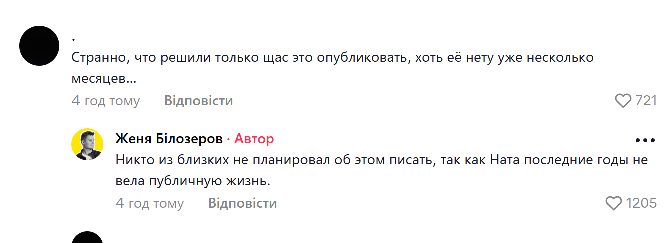 Женя Білозеров пояснив, чому тільки зараз стало відомо про смерть Нати Лайм / Скриншот з тіктоку