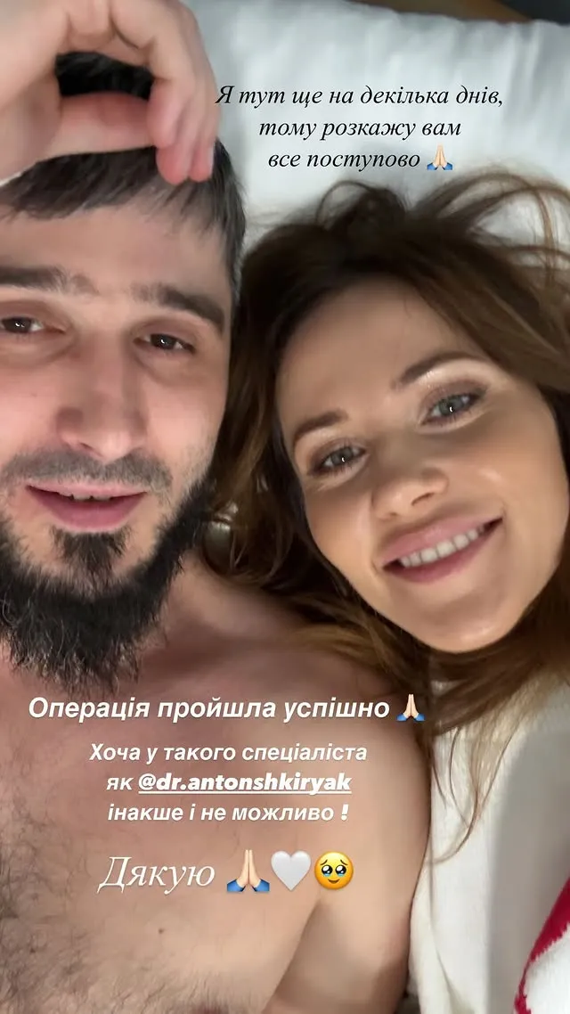 Наталка також показала спільне фото з чоловіком. Вона зауважила, що операція пройшла успішно.