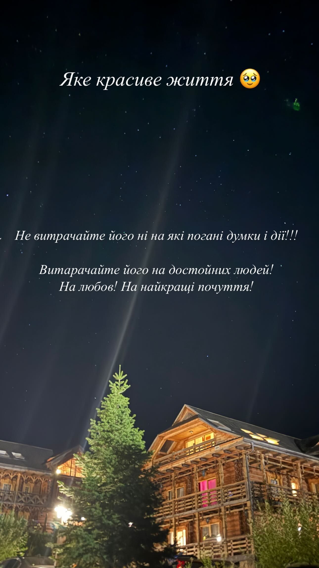 Зіркове подружжя проводить відпустку у Карпатах – селищі Татарів, у курортному готелі в гуцульському стилі. Саме тут вони відсвяткували державне свято – День Незалежності України.