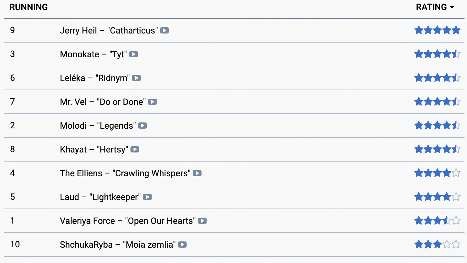 Рейтинг фіналістів Нацвідбору на думку єврофанів / Скриншот з сайту