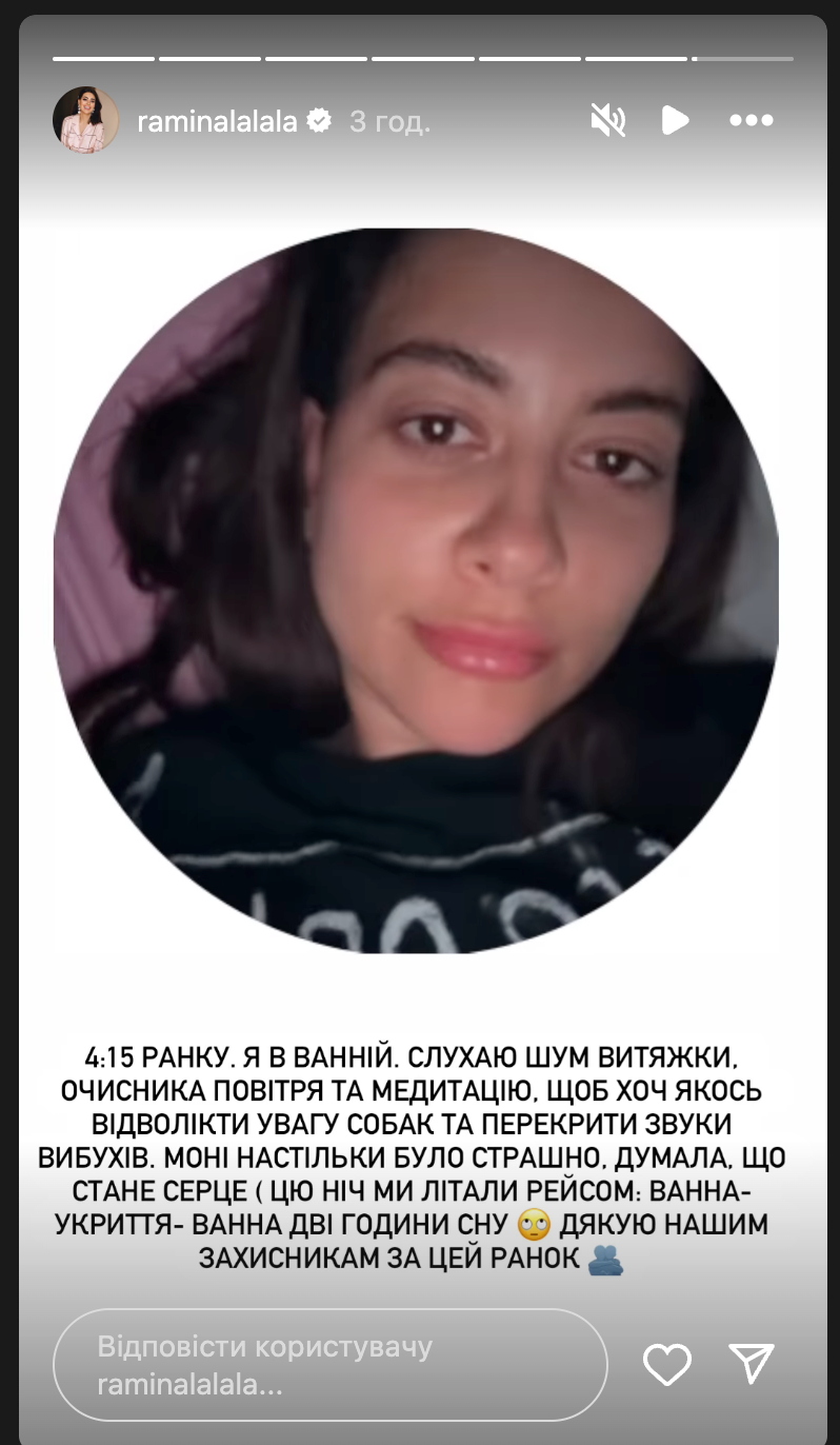 "І поміж усього, що ми переживаємо, ми втратили ще й найпростіше – базові потреби людини. Відчуття безпеки. Коли "мій дім – моя фортеця". Спати вдома. Не поміж незнайомців у метро чи підвалах. А просто – у своєму ліжку. Та й просто – спати", – написала Лілія Ребрик.