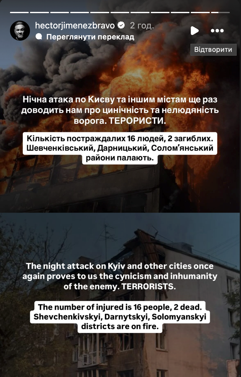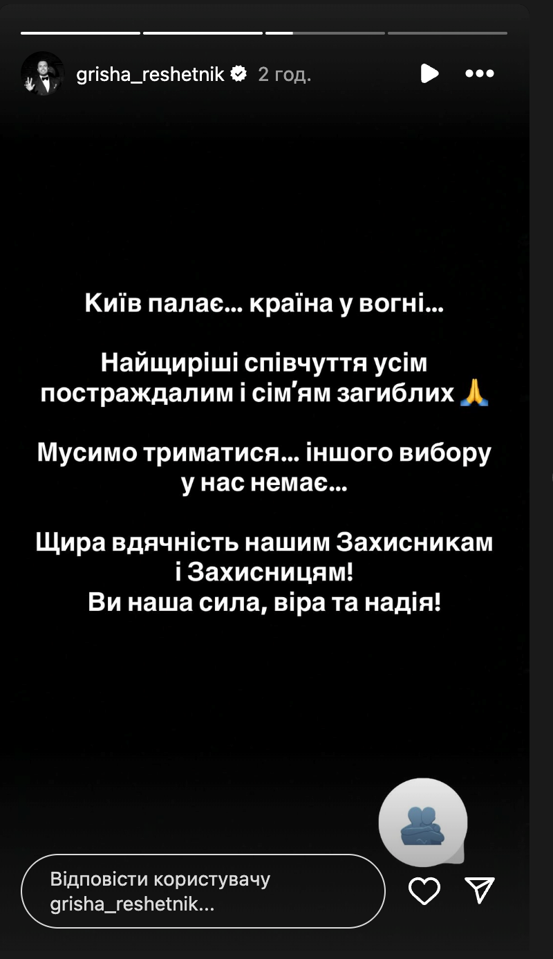 Зірки відреагували на обстріл Києва / Скриншоти з інстаграму