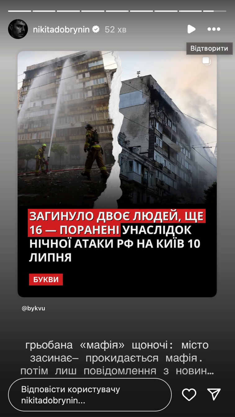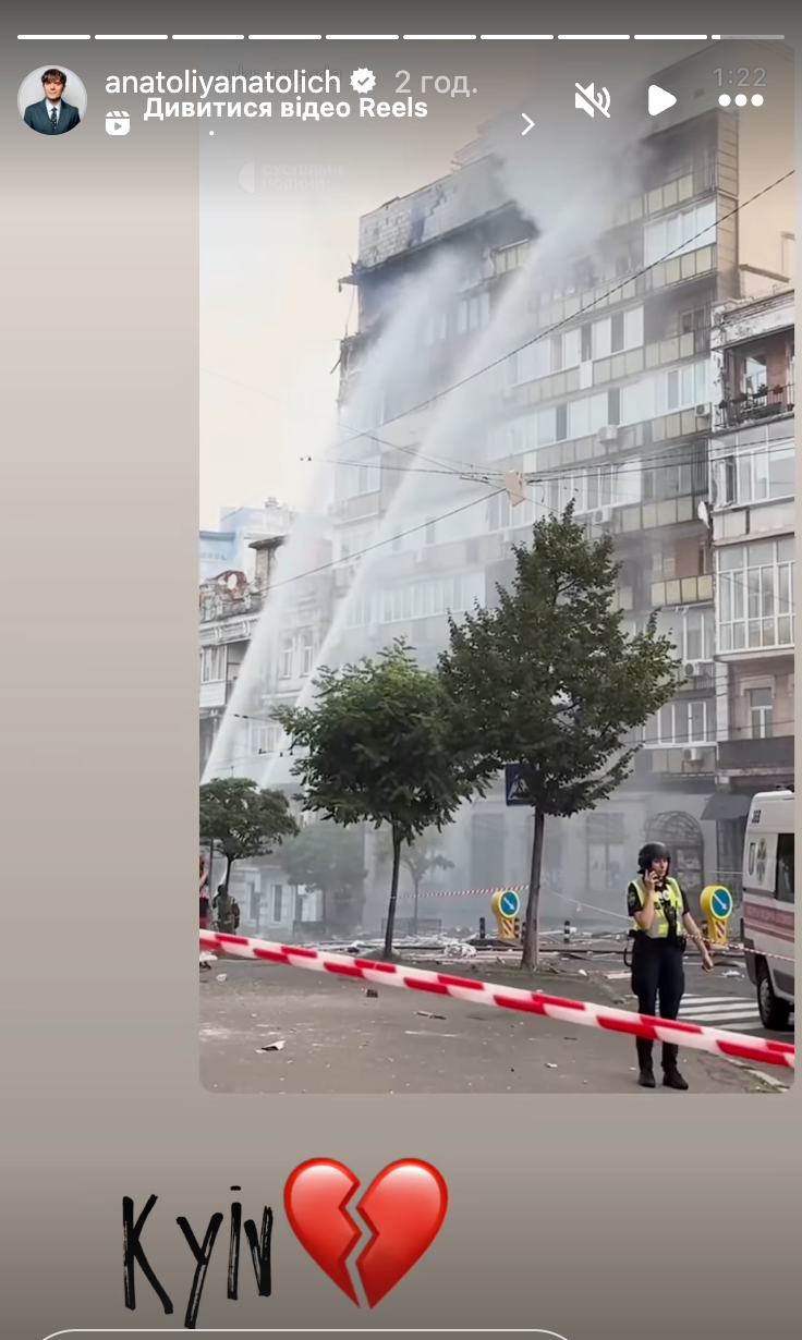 Юрій Горбунов відреагував на російську атаку по столиці / Скриншот з інстаграму