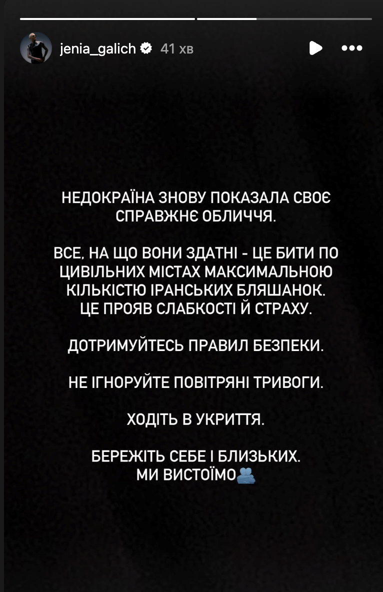 Женя Кот відреагував на російську атаку по столиці / Скриншот з інстаграму