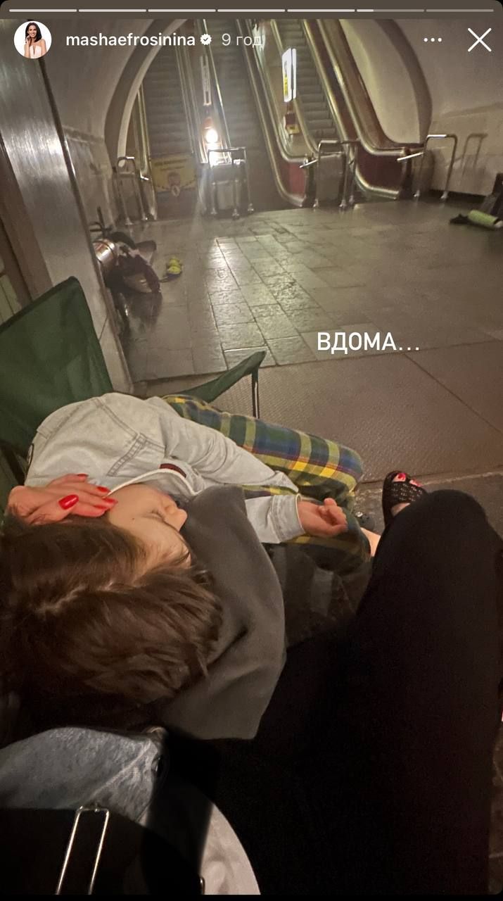 Телеведуча опублікувала фото з метро, де її син спить у неї на колінах. Єфросиніна коротко підписала: "Вдома".