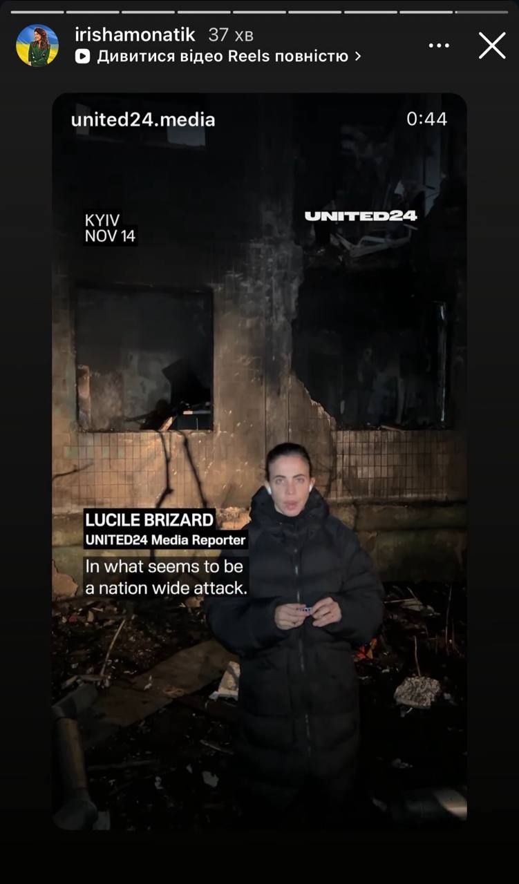Маша Єфросиніна відреагувала на масований обстріл Києва / Скриншот з інстаграм-сторіс