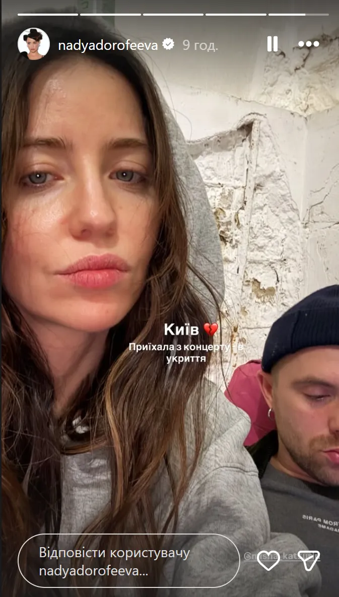 Надя Дорофєєва показалася з Мішею Кацуріним в укритті / Скриншот з інстаграм-сторіс
