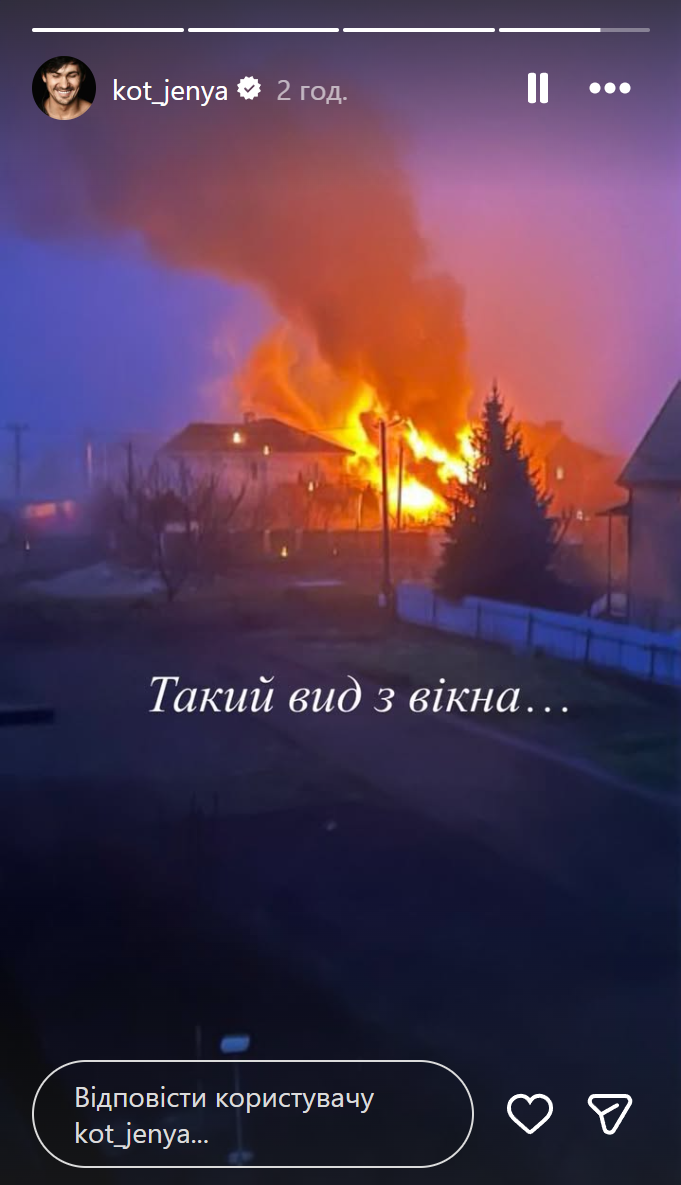 Танцівник показав в інстаграм-сторіс, що в сусідньому будинку сталася велика пожежа.