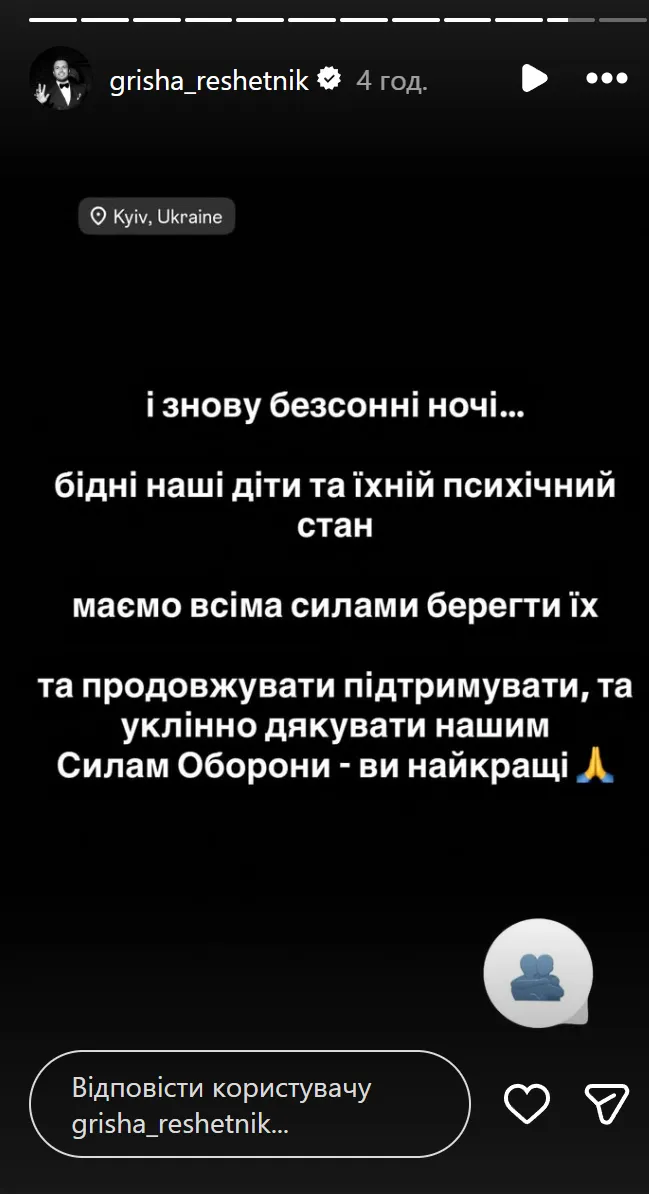 Григорій Решетник прокоментував ракетний обстріл столиці / Скриншот з інстаграм-сторіс