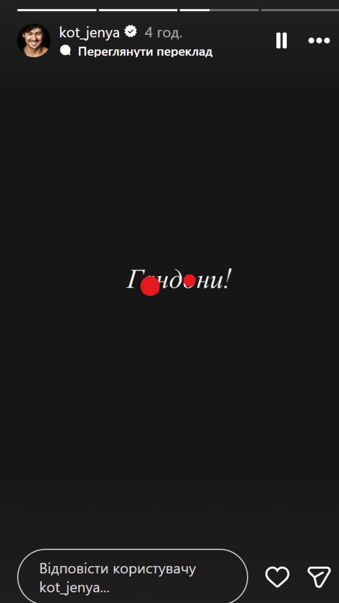 Євген Кот прокоментував ракетний обстріл столиці / Скриншот з інстаграм-сторісОльга Мерзлікіна