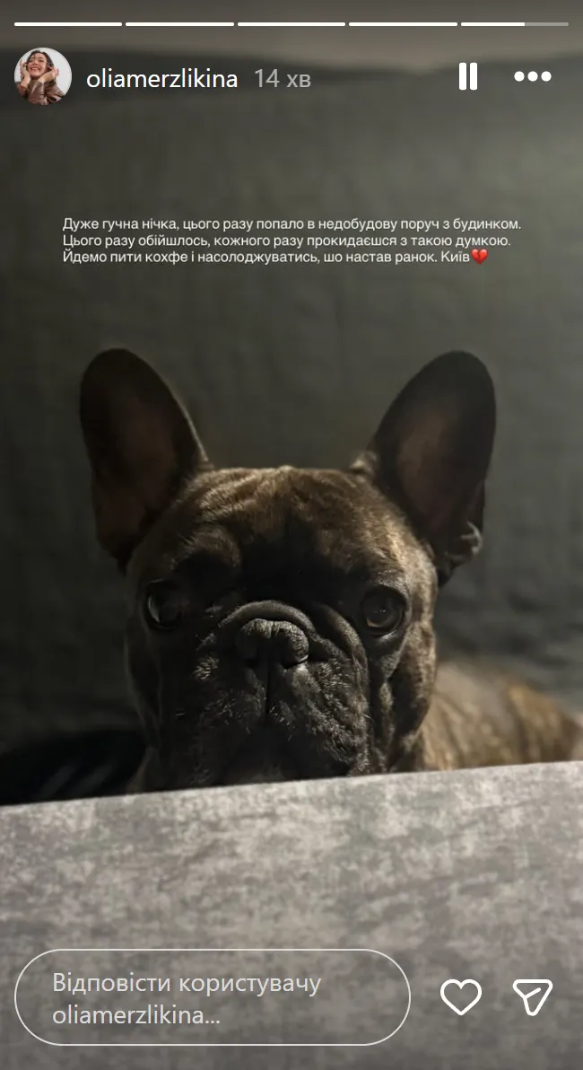 Ольга Мерзлікіна прокоментувала ракетний обстріл столиці / Скриншот з інстаграм-сторіс