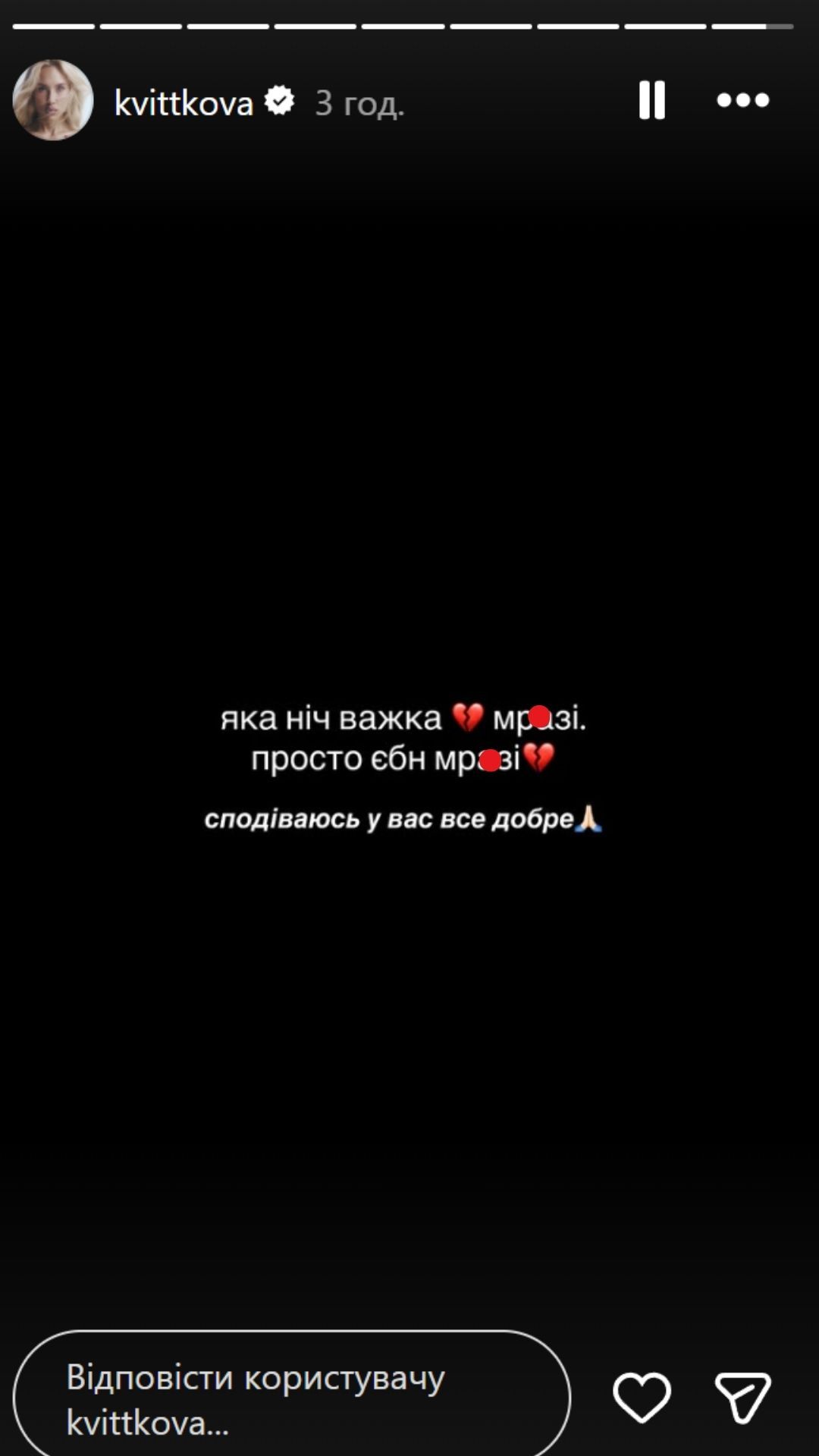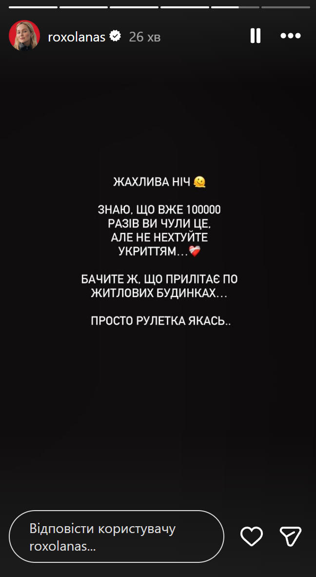 Блогерка опублікувала емоційну інстаграм-сторіс.
