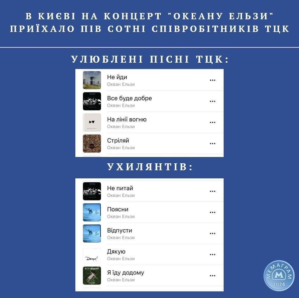 Меми про облаву ТЦК на концерт "Океану Ельзи" / Скриншоти з соцмережі Х