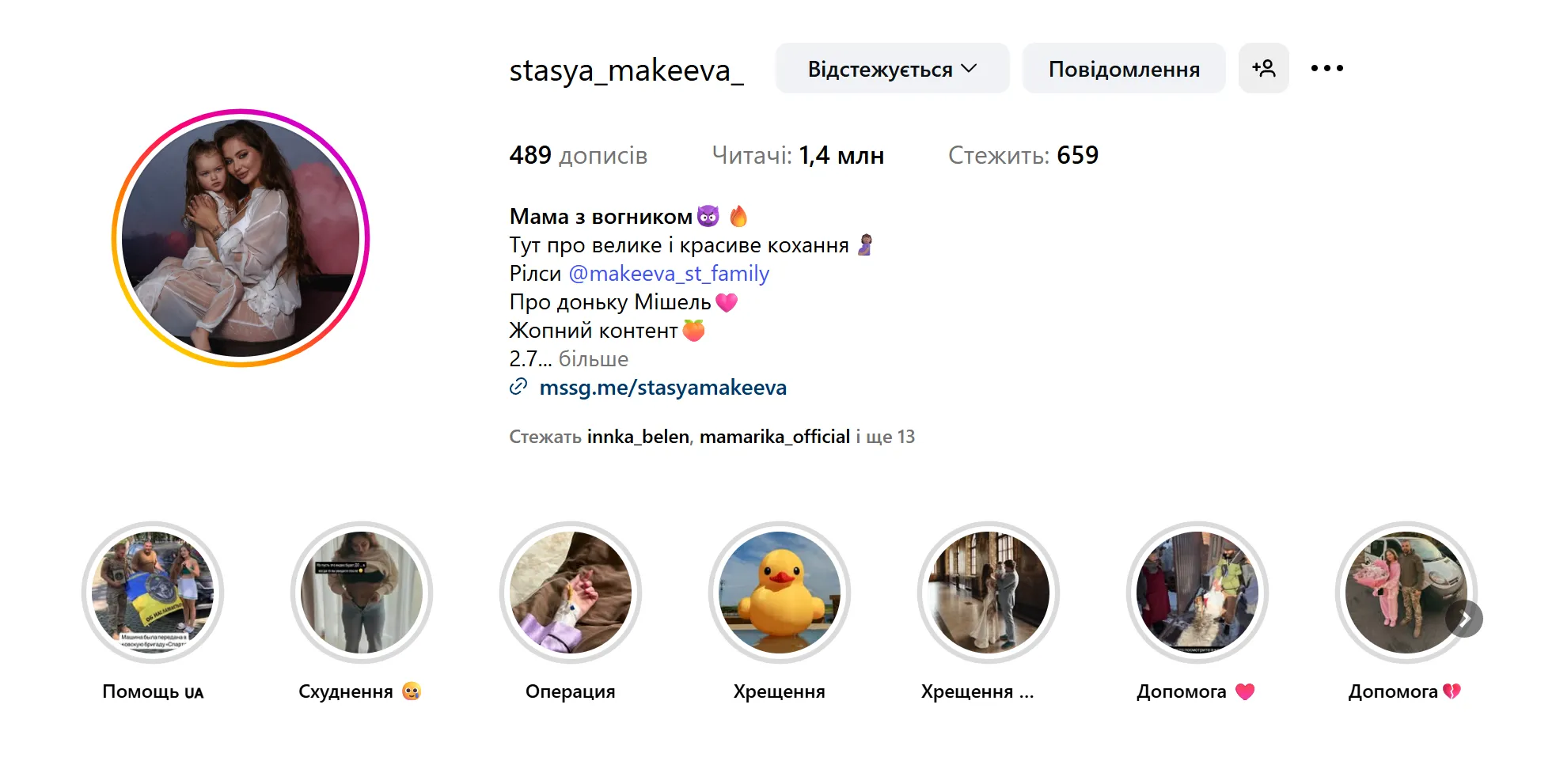 Блог Стасі Макєєвої / Скриншот з інстаграм-сторіс