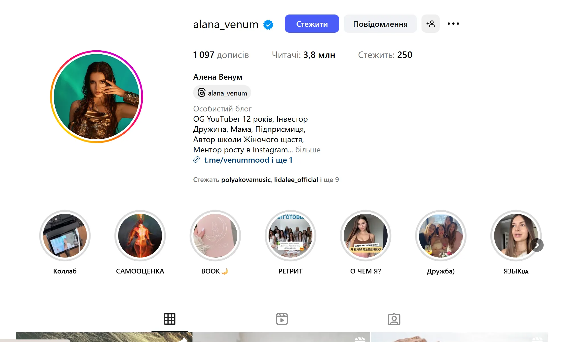 Сторінка Юлі Верби / Скриншот з інстаграму