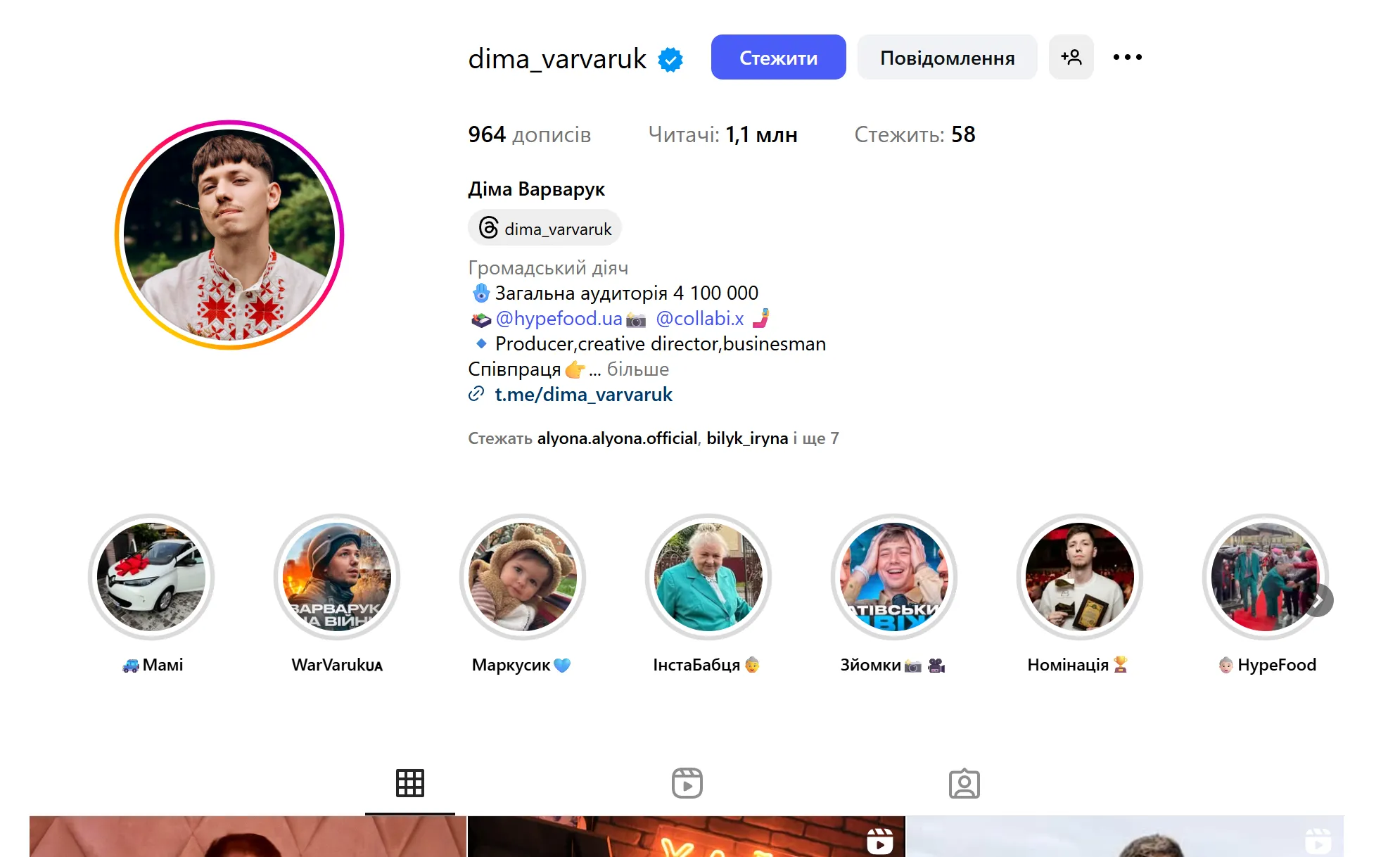Блогери Дмитро Варварук з Івано-Франківської області та Олег Машуковський з Луганська мають по 1,1 млн підписників.