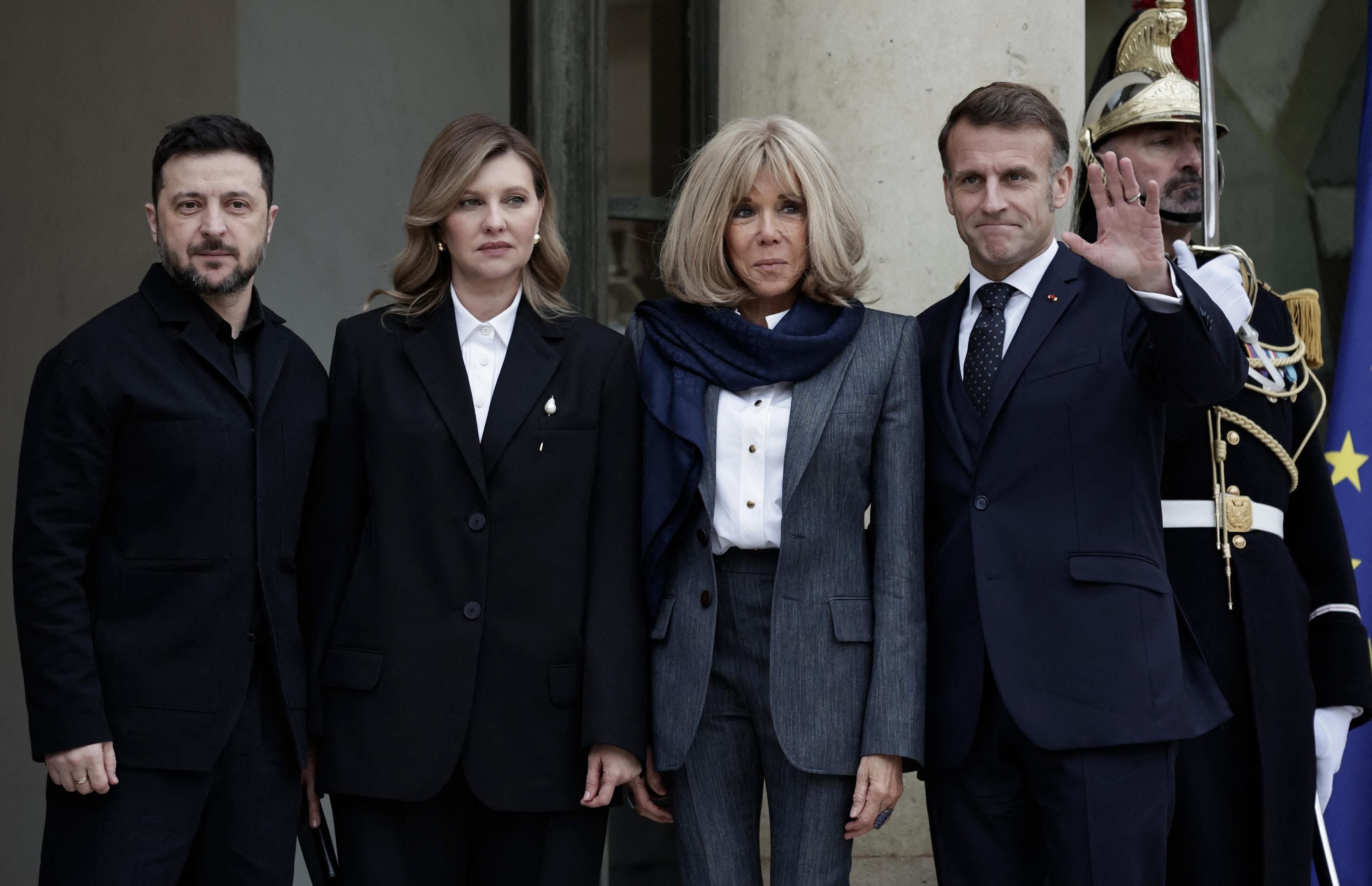 - Олена Зеленська разом з Володимиром Зеленським відвідали Єлисейський палац у Франції, де зустрілися з Емманюелем та Бріжит Макрон.