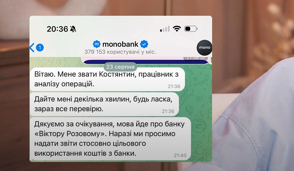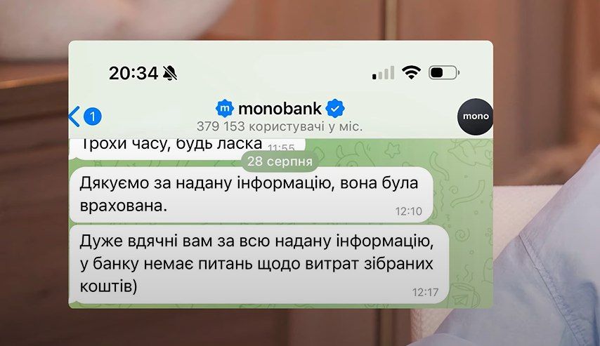 Після звинувачення Віктора до Ольги звернувся представник Монобанку, якому вона надала звітність щодо використання донатних коштів. Модель зауважила, що банк не мав жодних питань до неї.