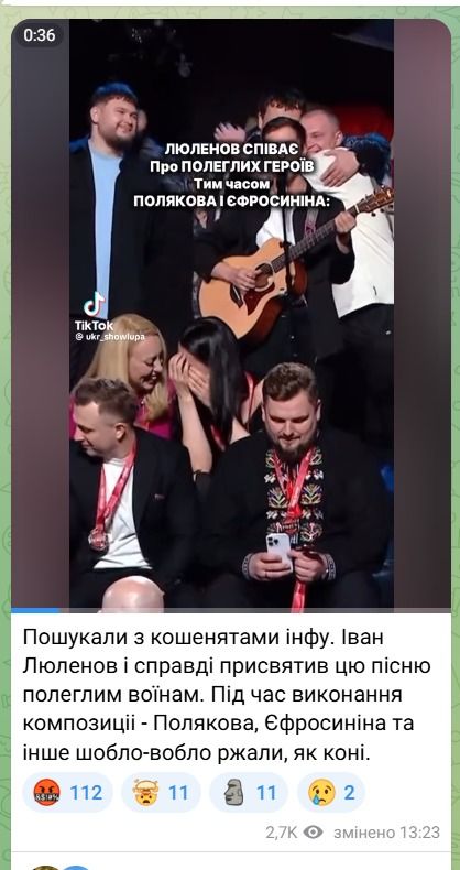 У фіналі сезону "Ліги сміху" Іван Люленов заспівав різдвяну пісню "Віддаю". У ній є такі рядки: "Поверни тих, хто на небесах, янголами". Коли ж гуморист виконував трек, Маші Єфросиніній та Олі Поляковій було весело. Фрагмент із випуску поширили в тікток-акаунті ukr_showlupa. У коментарях користувачі критикують жінок.