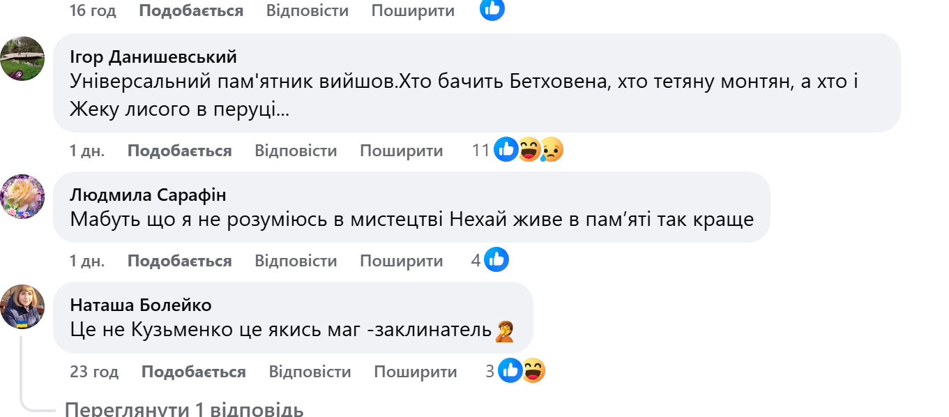 У мережі розкритикували новий пам'ятник Кузьмі / Скриншоти з фейсбука