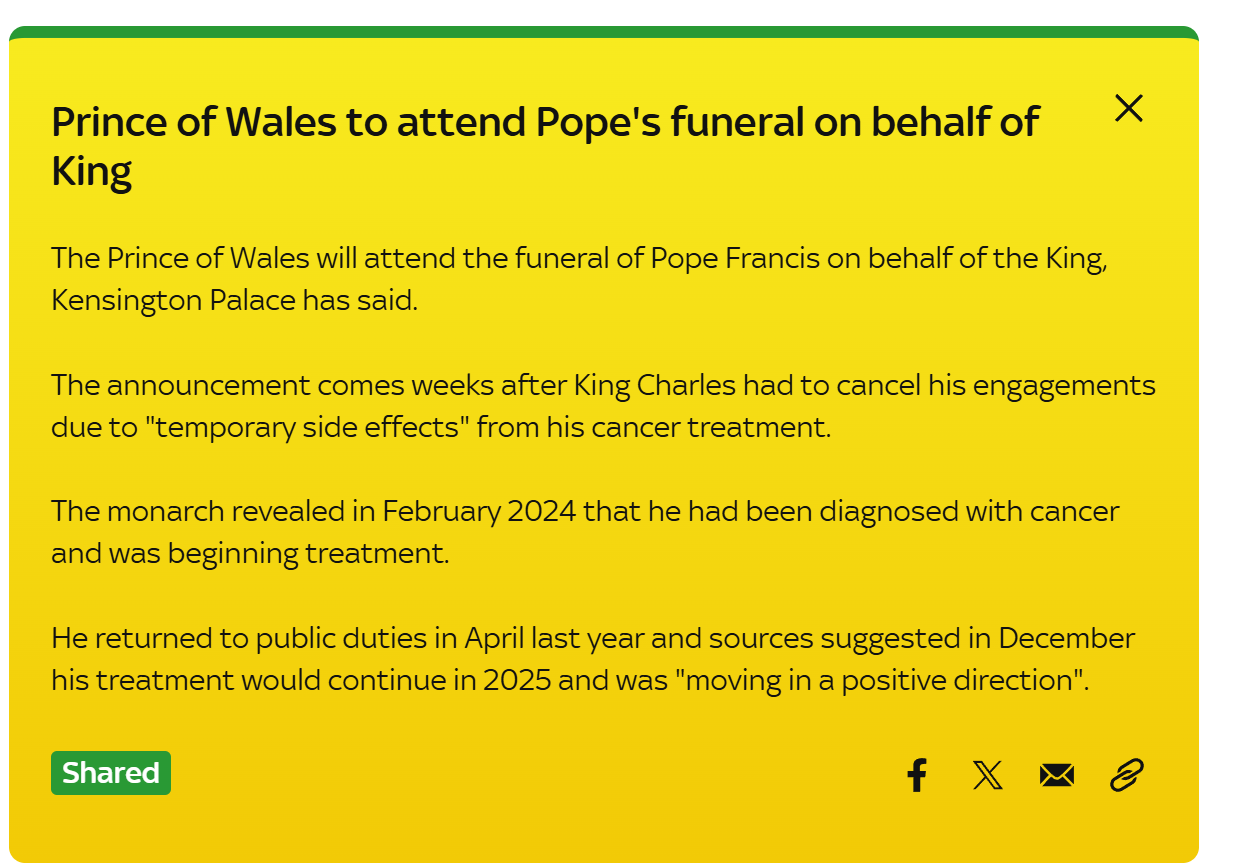 Принц Вільям відвідає похорони Папи Римського Франциска / Скриншот з сайту Sky News.
