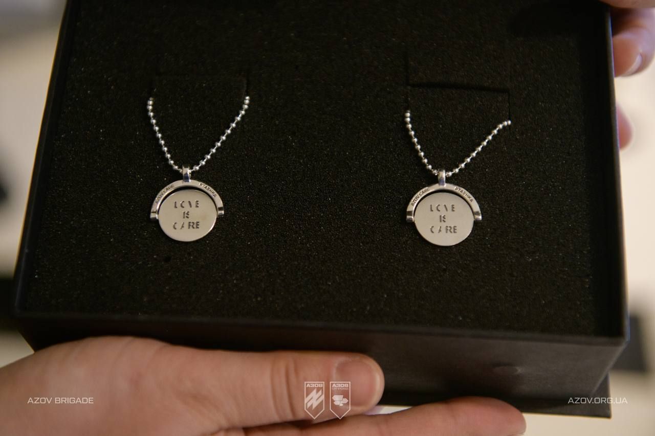 Прикраси Love is care виготовлені у співпраці АЗОВ.Супровід та бренду Ptashka jewelry. Ідею допомогла втілити Катерина Саблук. У бригаді також подякували мисткині Олені Коногоровій.