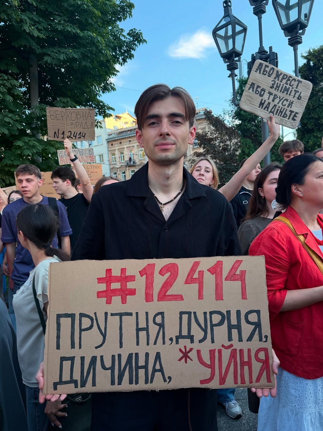 Антон Тимошенко на протесті проти закону №12414 / Фото з Threads коміка