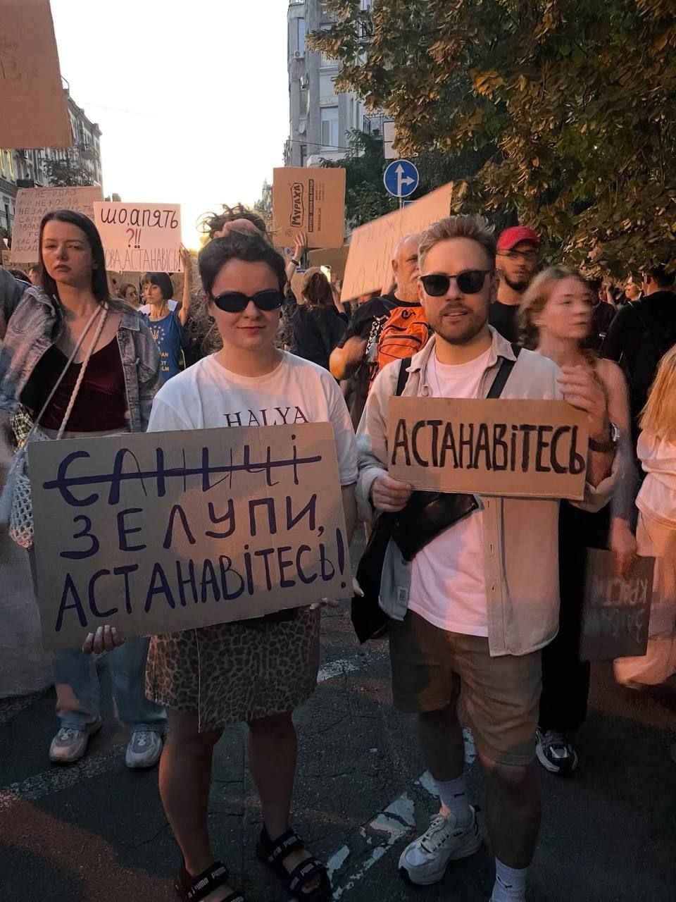 Інфлуенсер Ігор Лаченков, акторка Ганна Кузіна, блогер Андрій Шимановський, співачка Анжеліка Рудницька, телеведуча Марічка Падалко, акторка Римма Зюбіна на протестах: