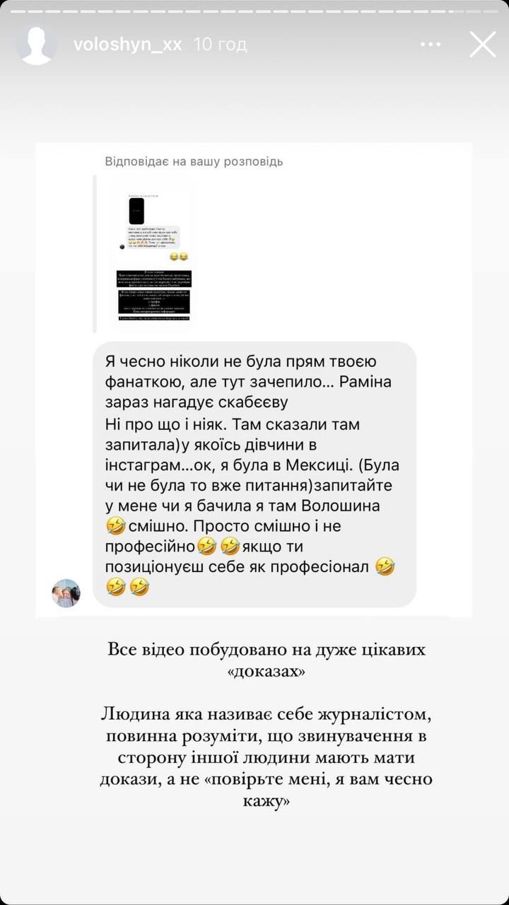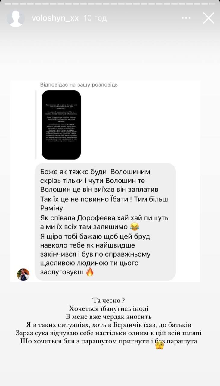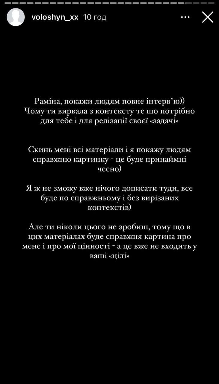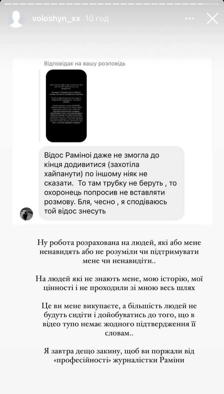 Олександр Волошин відреагував на відео Раміни Есхакзай про нього / Скриншот з інстаграм-сторіс