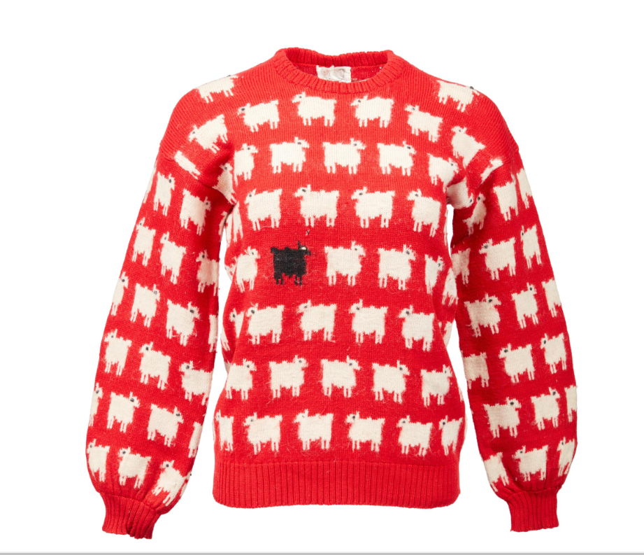 У 2023 році на аукціон виставили лот, який понад 40 років пролежав на горищі. У 1979 році дизайнерки Саллі М'юір і Джоанна Осборн створили в'язаний яскраво-червоний вовняний светр з круглим вирізом. Джемпер мав нестандартний принт: багато білих овець з однією чорною.