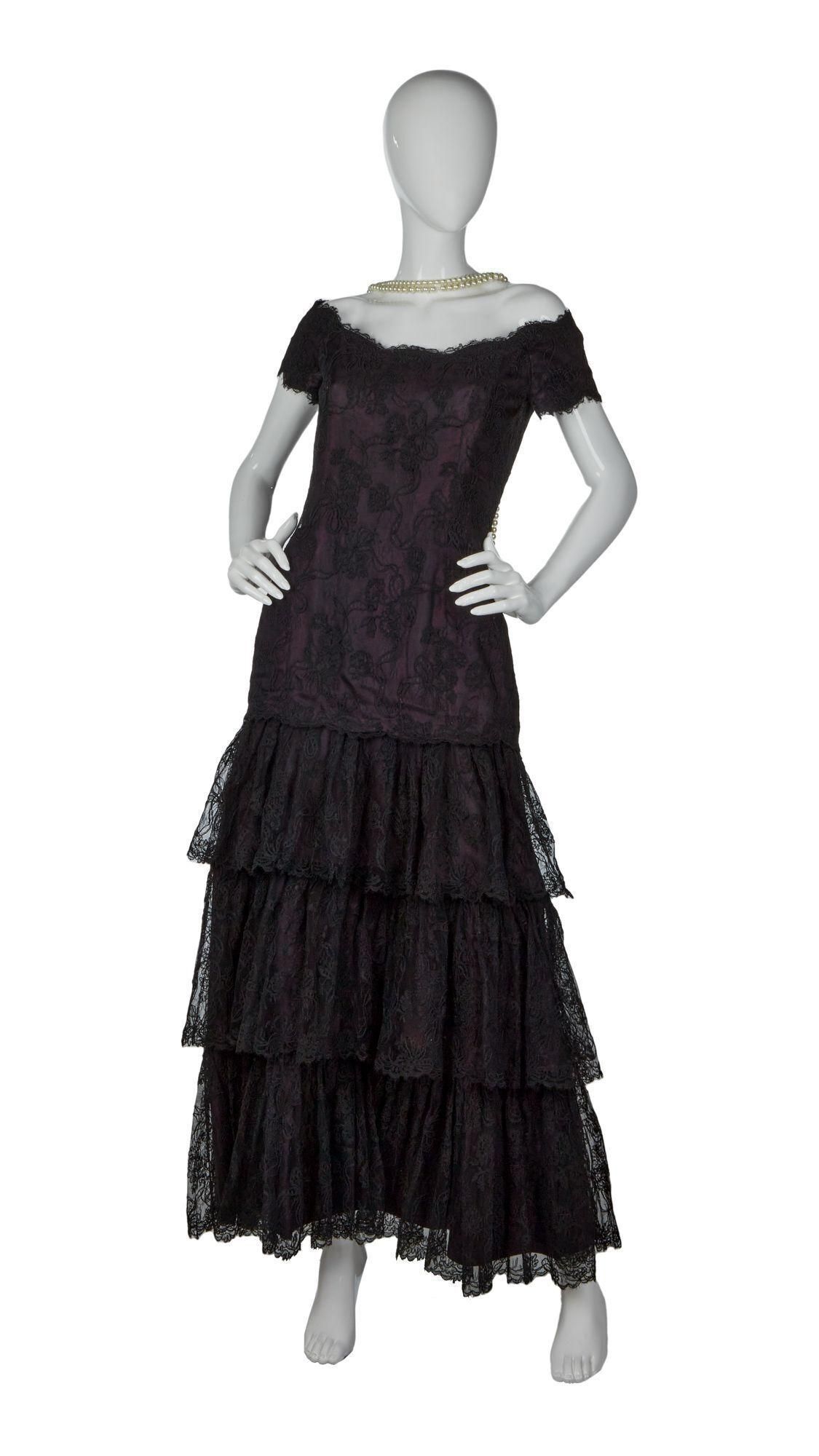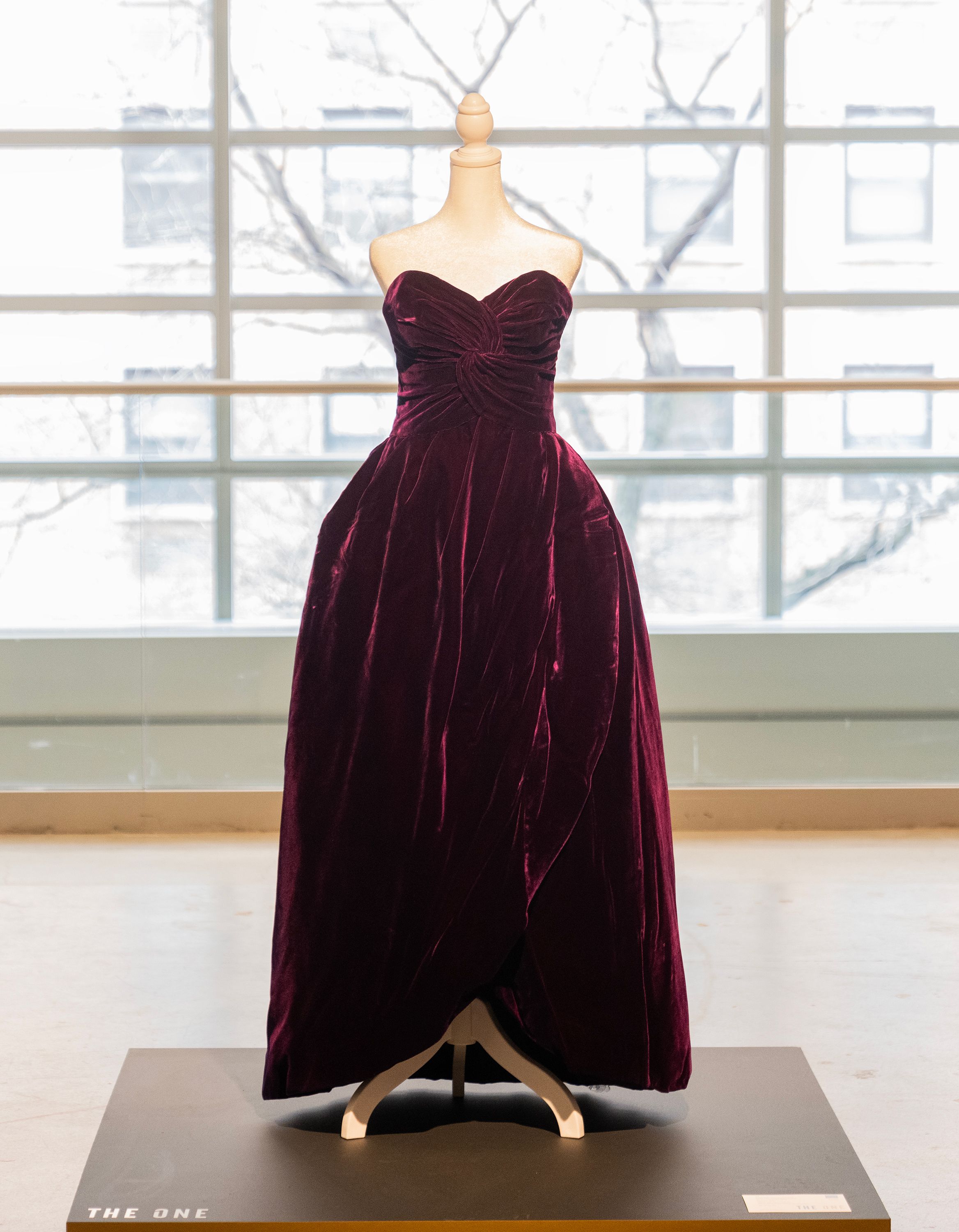 На аукціоні Sotheby's виставили вечірню оксамитову сукню у баклажановому кольорі, яку розробив у 1989 році модельєр Віктор Едельштейн.