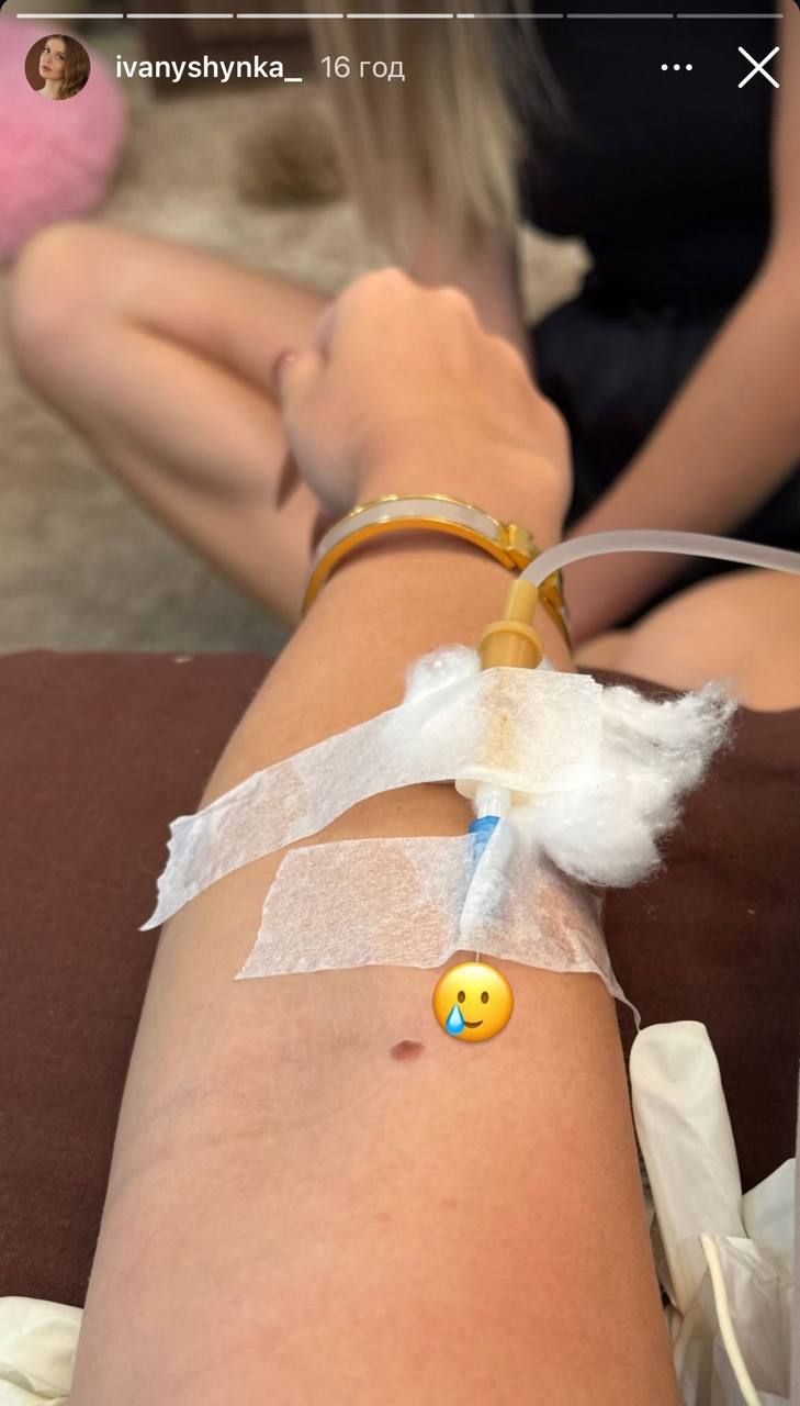 Ксенія Ільчук розповіла, що її госпіталізували після того, як вона втратила свідомість через погане самопочуття. Зокрема, у неї була висока температура. Лікарі призначили дівчині крапельниці.