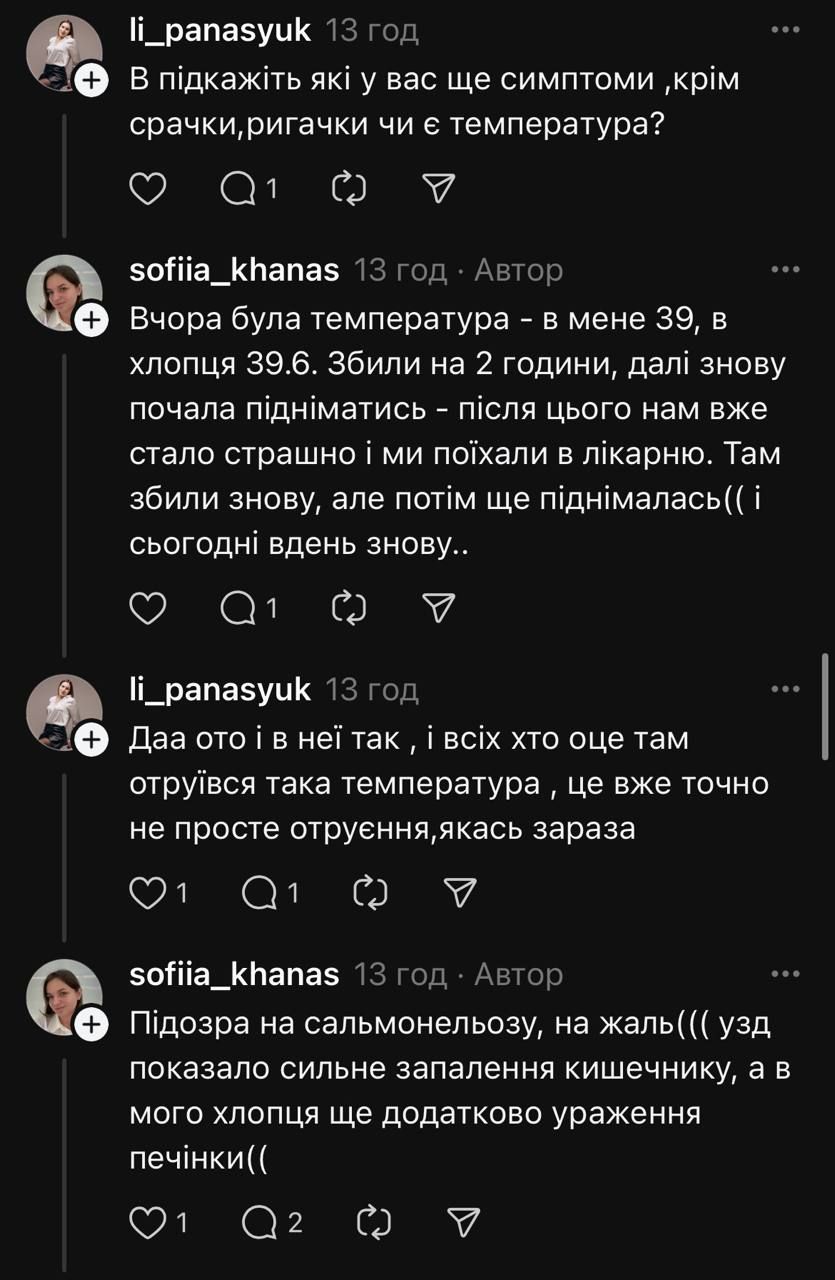 Софія Ханас розповіла про те, як отруїлася в новому закладі Міці Кацуріна у Львові / Скриншоти з Threads
