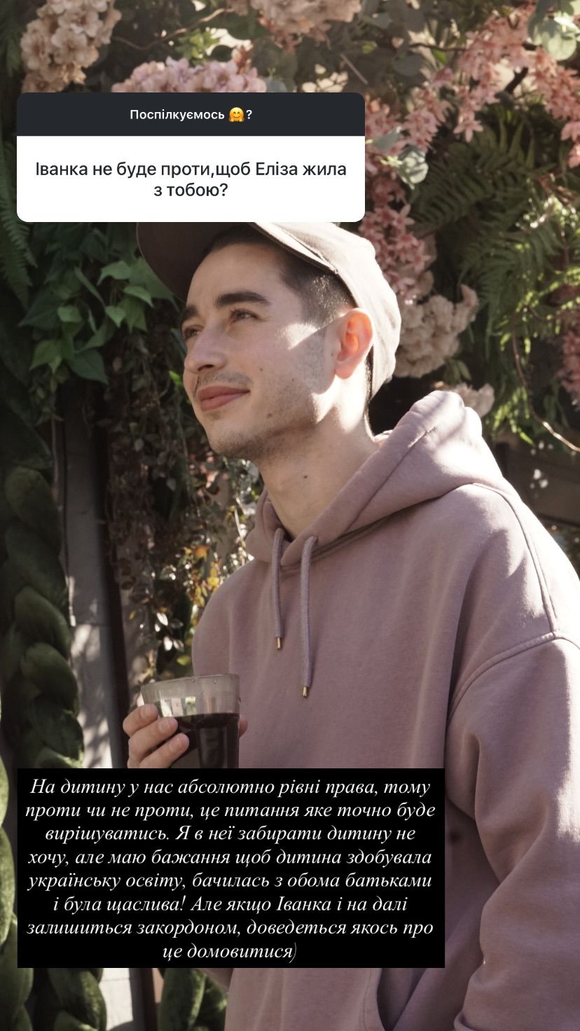 Співак також відповів на запитання, чи не буде Іванна проти того, щоб Еліза жила з батьком. Роман зазначив, що в обох батьків рівні права стосовно дитини.