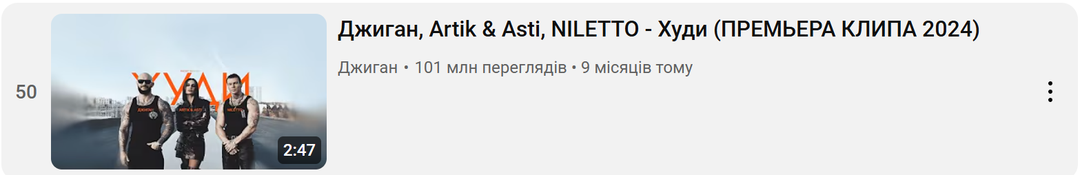 Які російські треки українці слухають на ютубі / Скриншот з сайту