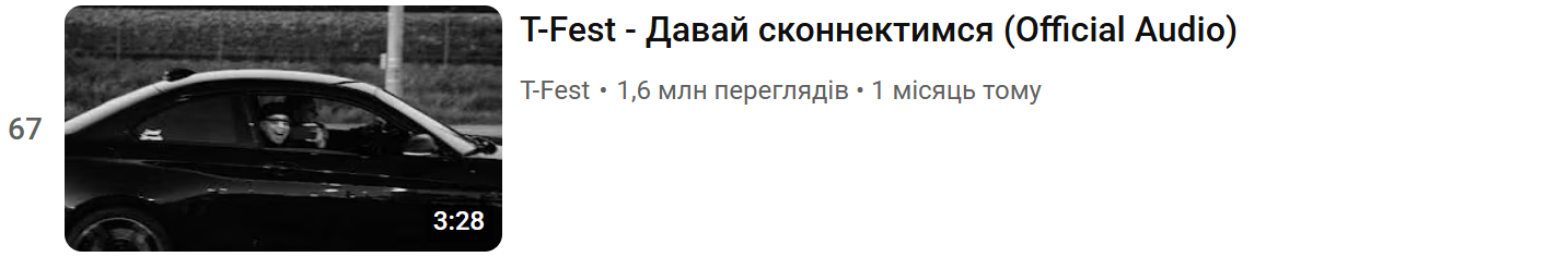 На жаль, так, треки росіян все ще присутні в українських чартах, хоча їхня кількість не така значна, порівняно з україномовним контентом. Серед 100 найпопулярніших музичних відео на ютубі є 10 російськомовних. Зокрема, й пісня українського музиканта T-Fest (Кирила Незборецького), який засудив війну й заявив, що залишив Росію ще до повномасштабного вторгнення. Водночас він і далі створює музику російською, що викликає суперечливі реакції.