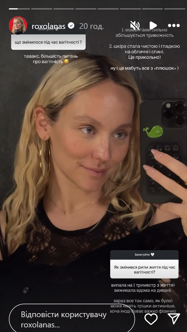 28-річна українська співачка ROXOLANA, яка випустила популярний трек "Мистецтво", чекає на народження первістка. Днями вона вперше прокоментувала свою вагітність.