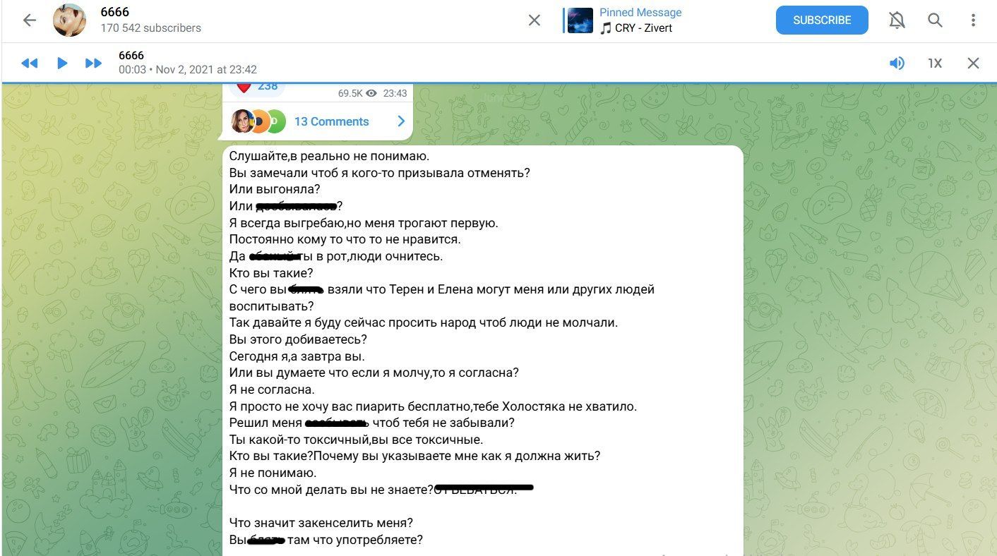 В прошлом месяце в сети активно обсуждали конфликт между блогерами Еленой Мандзюк и Анной Алхим. Последнюю в очередной раз критиковали за то, что она продолжает слушать русские песни, общаться на русском языке и продвигать пропагандистские нарративы даже во время полномасштабного вторжения.
