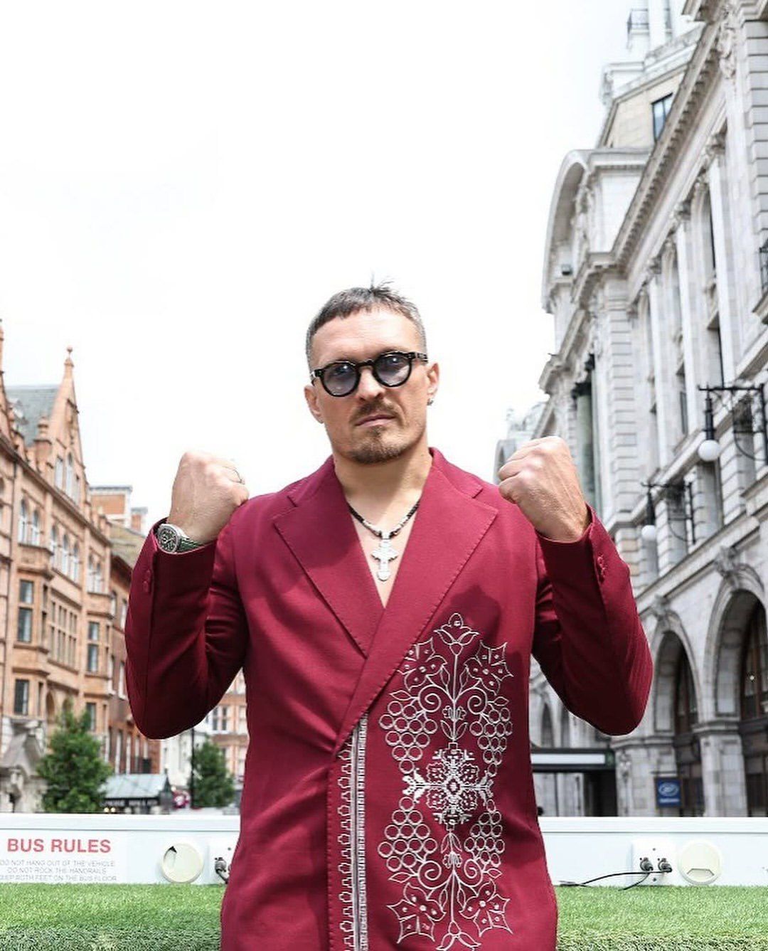 Александр Усик появился на улицах Лондона в бордовом костюме с авторской вышивкой. Это переосмысленный образ казака XXI века, разработанный специально для боксера.