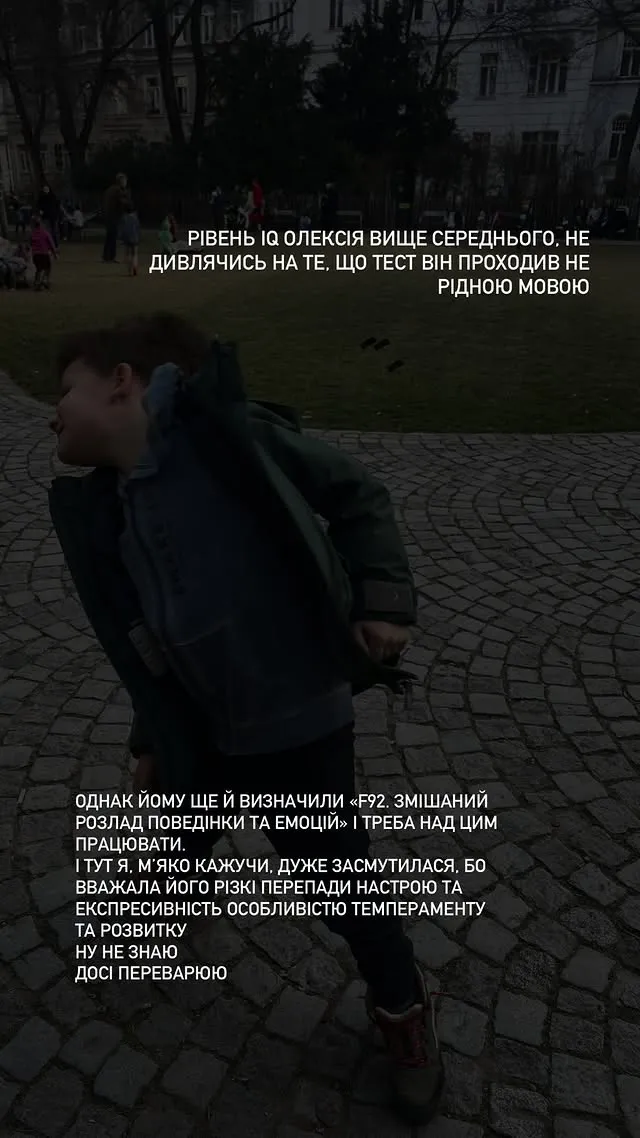 "Уровень IQ Алексея выше среднего, несмотря на то, что тест он проходил не на родном языке. Однако ему еще и определили смешанное расстройство поведения и эмоций. Надо нам над этим работать. И здесь я, мягко говоря, очень расстроилась, потому что считала его резкие перепады настроения и экспрессивность особенностью темперамента и развития", – поделилась Шоптенко.